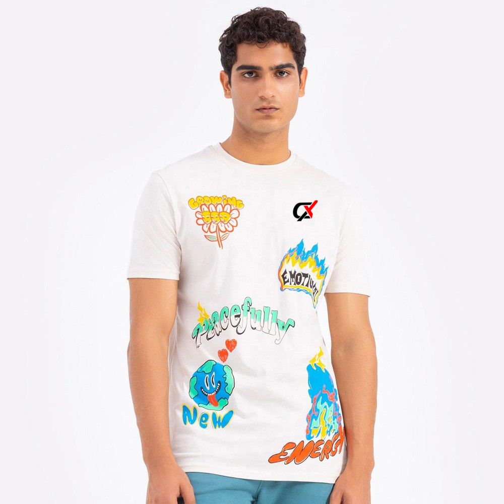 Elevate your casual streetwear with this Men’s Cartoon-Art Printed T-Shirt in White, featuring vibrant cartoon-style designs and expressive typography like “Peacefully,” “Energy,” and “Emotion.” Crafted for both comfort and statement-making flair, this tee pairs effortlessly with jeans or joggers. Perfect for the guy who’s not afraid to show his style and energy.