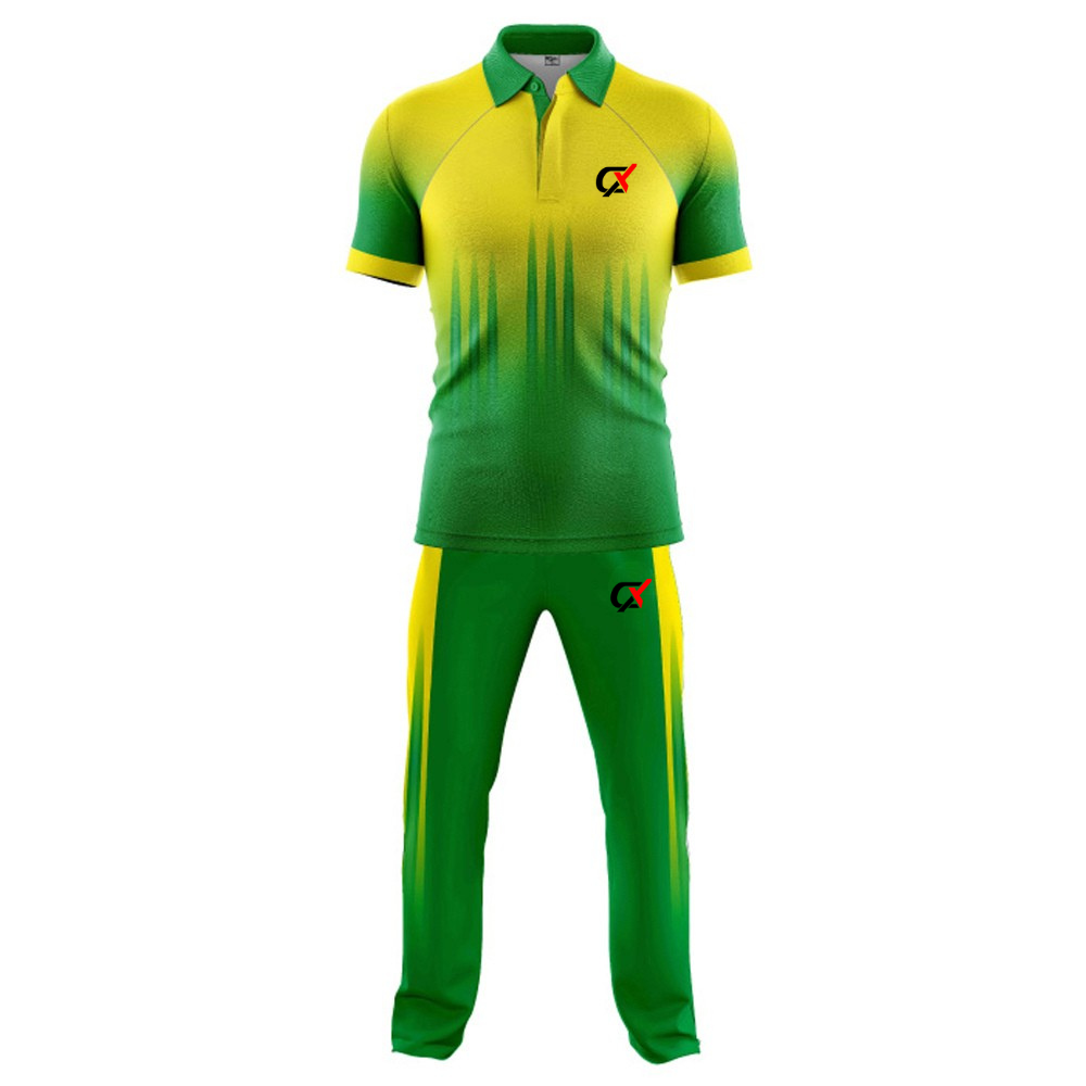 Men’s Green and Yellow Gradient Cricket Kit with Unique Design
