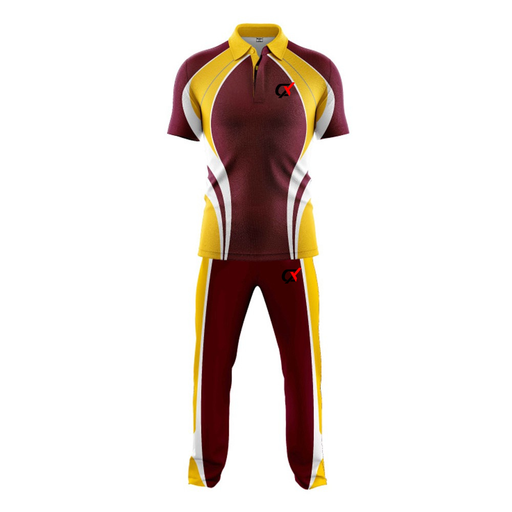 HomeSports WearCricket Uniform Shop Maroon and Yellow Cricket Uniform Set
